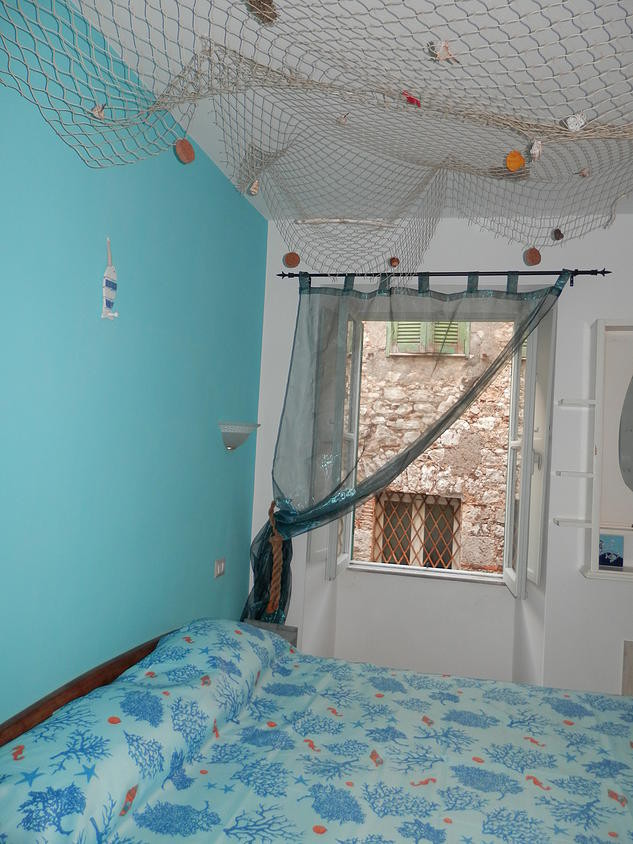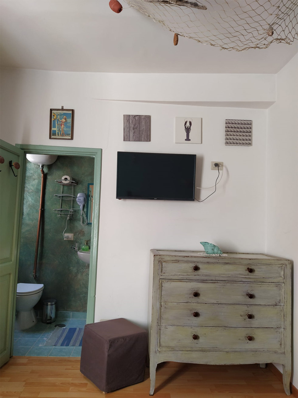 Al primo piano c'è la camera mare. come suggerisce il nome stesso, la camera è arredata con elementi che ricordano il mare. I colori allegri, la rete appesa al soffitto, renderanno la vostra permanenza rilassante all'insegna del buon umore..